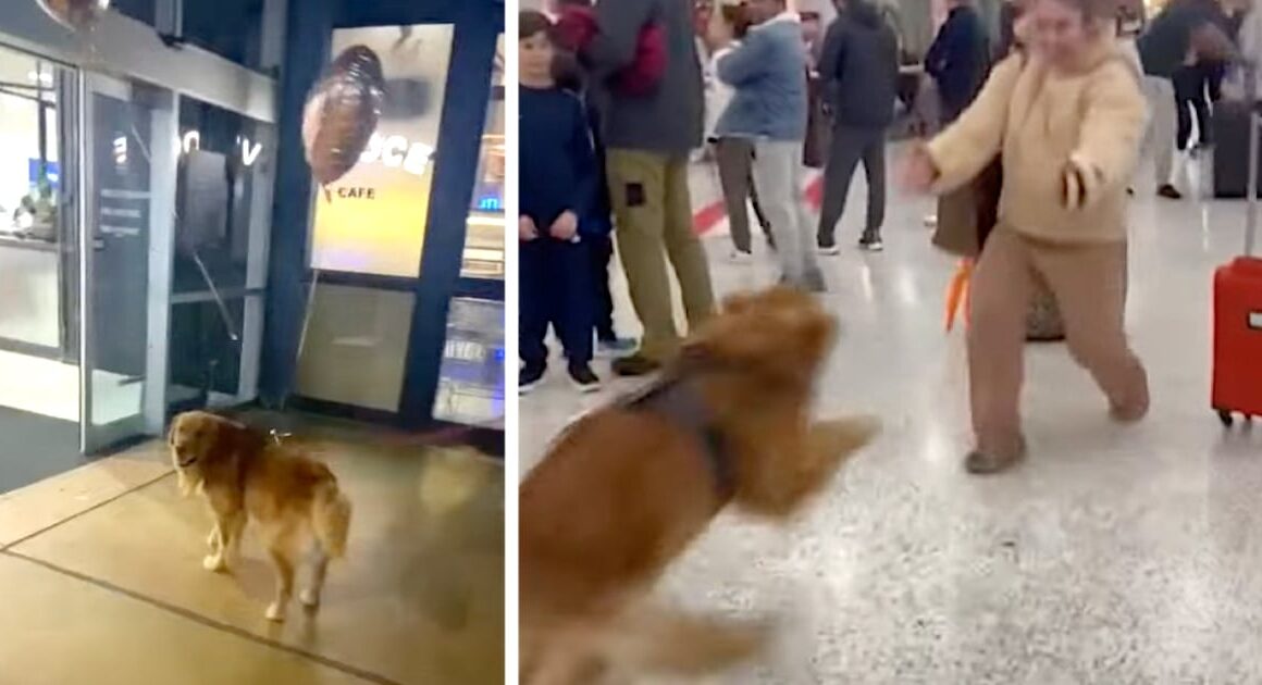 Fitted with “Welcome Home” balloons, the Golden couldn’t contain his excitement when he saw Mom walk through the arrivals. The good boy took off running toward her with that tail going 100 mph! It’s so sweet and emotional, and it’s everything Alexandra needed in that moment. π