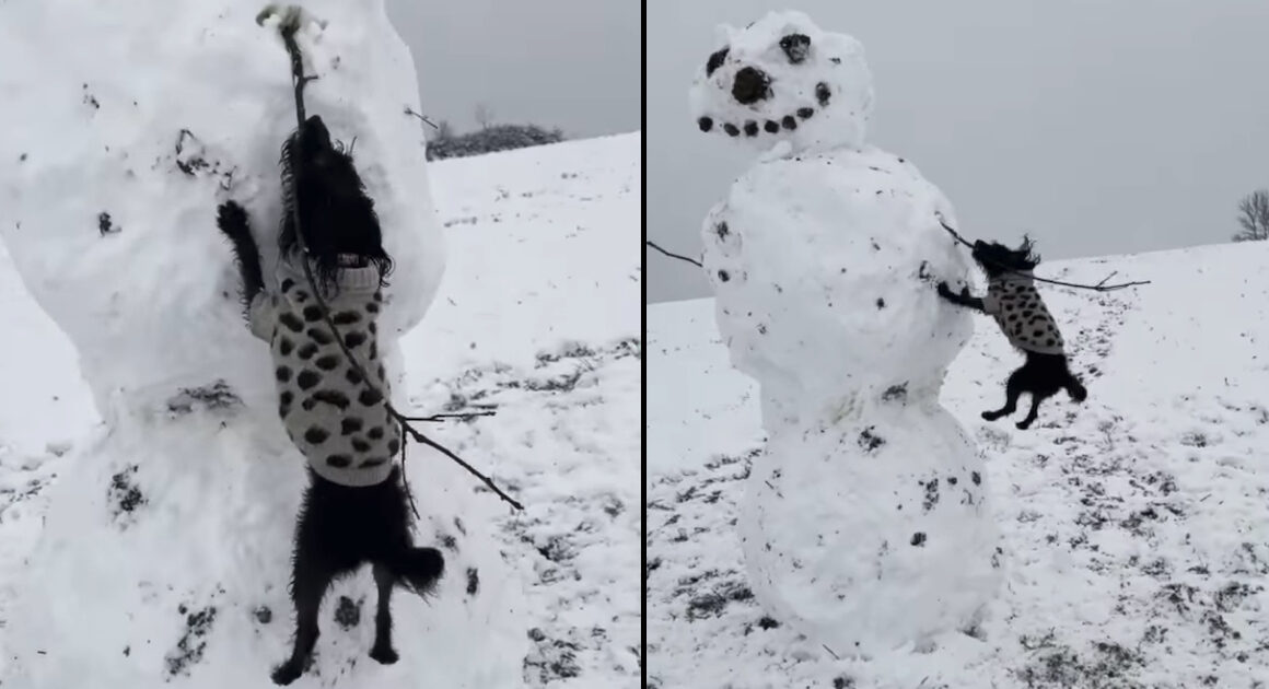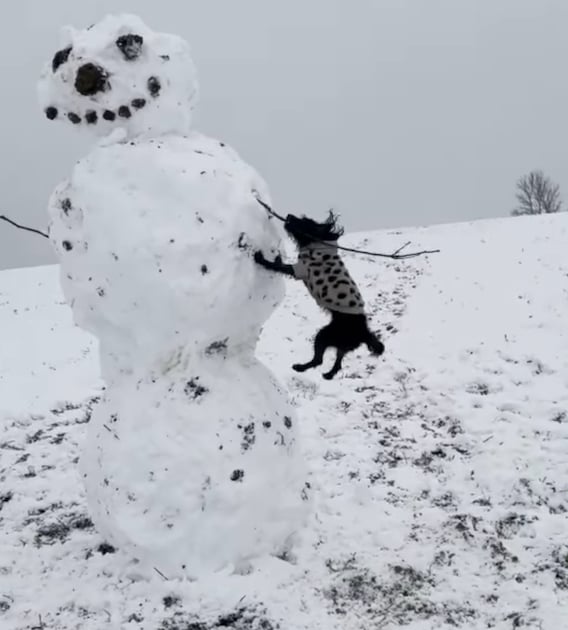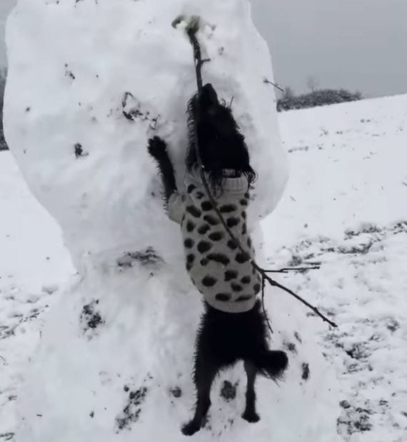 While out on walk with her parents, the family came across a field of undisturbed snow. So they took some time to play and build a snowman. But Alice kept eyeing the twigs that were to be used as the snowman’s arms! Once placed on the snowman, she couldn’t reach. But she kept trying!