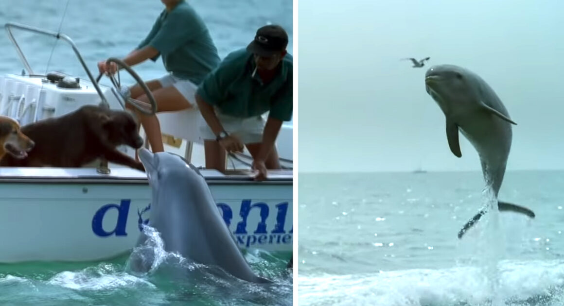 Everyone loves to boop a dog, apparently even dolphins! From the award-winning IMAX classic DOLPHINS by MacGillivray Freeman Films, this dog gets a smooch and a boop from a dolphin, and then the dolphin swims away and jumps for joy! π