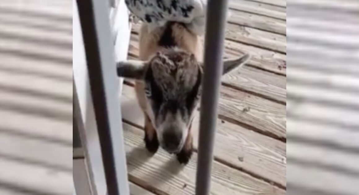 The owner had this to say about the interaction: “Woke up to my goat bringing his chick friend for cuteness trying to bribe me to get in the house.”