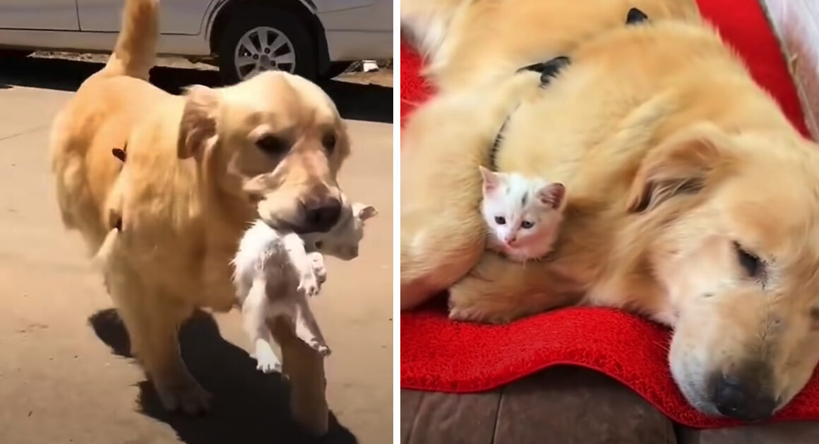 You’d think dogs wouldn’t be able to surprise us anymore with their generosity and unconditional love, but they somehow keep finding new ways to one-up themselves. In the video below, you’re about to see the time a Golden Retriever brought home a stray kitten to care for and befriend!