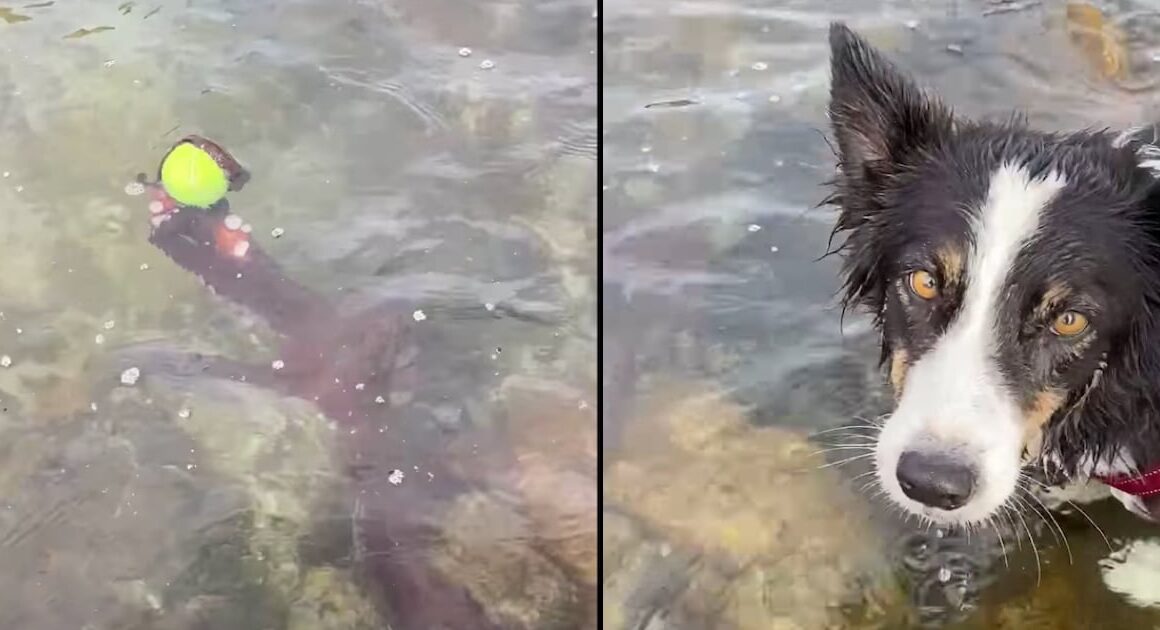 All of a sudden, an arm from the deep reached up and claimed the tennis ball! The look on Lucy’s face said it all, and even her owner, Riette Creighton, had never seen anything like it. The octopus swam in with the high tide and decided to join the game of fetch! Can you believe it? π