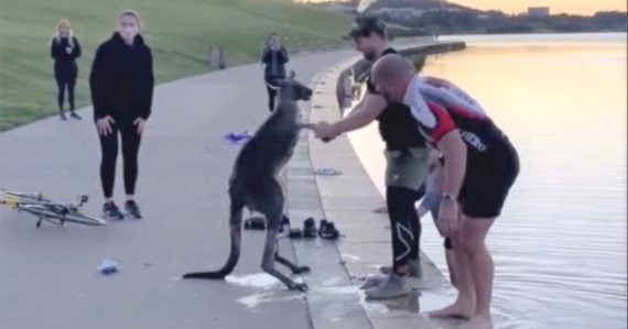 In Australia, a kangaroo found himself in the water where he froze up with fear. He didn’t know how to get out on his own and needed some help. And that’s exactly what would happen. Some good Samaritans saw the scared-stiff animal and went out for rescue…