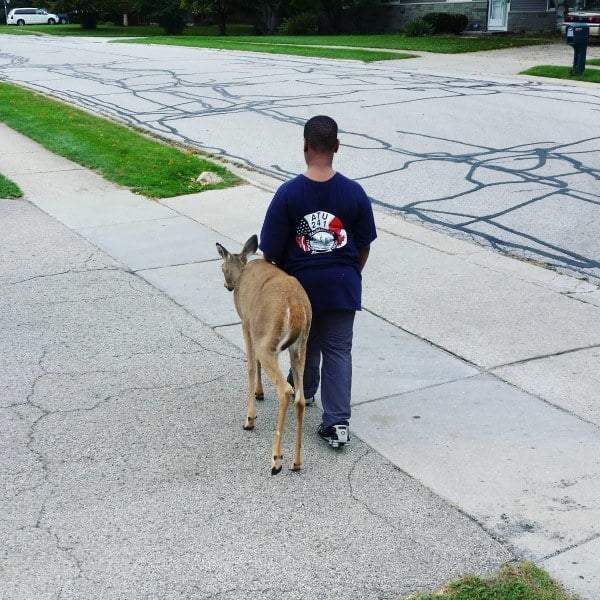 “There is a blind deer in our neighborhood and this boy (10 yrs old) walks her from one grass patch to another every day before school to make sure she finds food.”