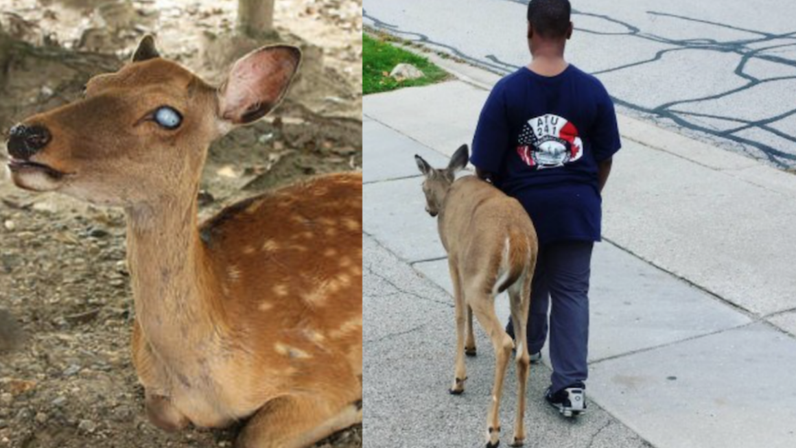 But this blind deer has a special helper.