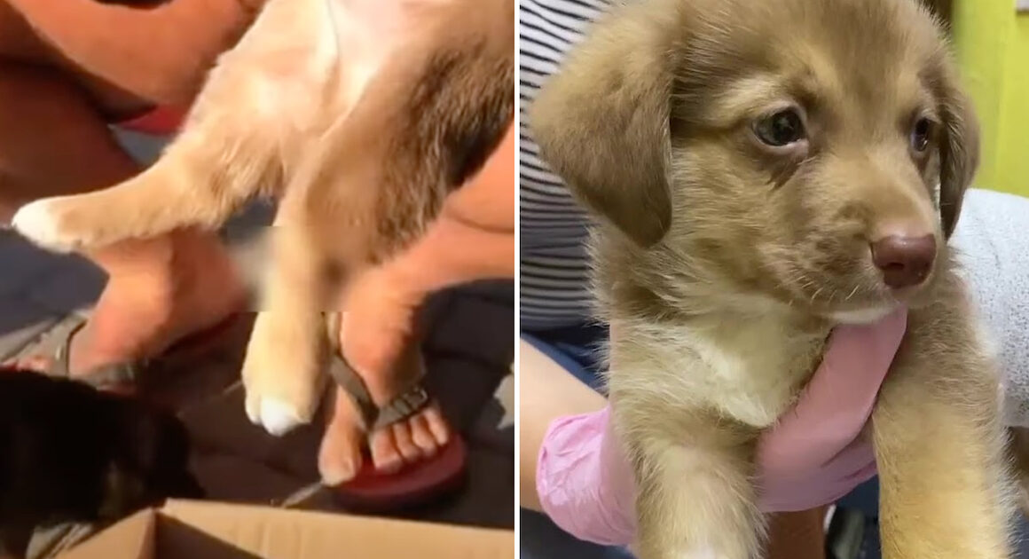 Little Puppy Found With A Hurt Leg After Falling Into A Trap