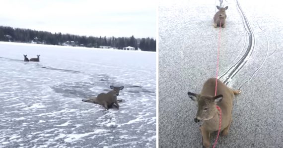 “The two younger ones took off running right away, but the doe stuck around with what seemed like an injured hip or leg,” he continued. The man called the Ontario Natural Resources Ministry but was told that since the lake was not entirely frozen, it would not be safe for anyone to immediately visit the scene to further assess the situation.