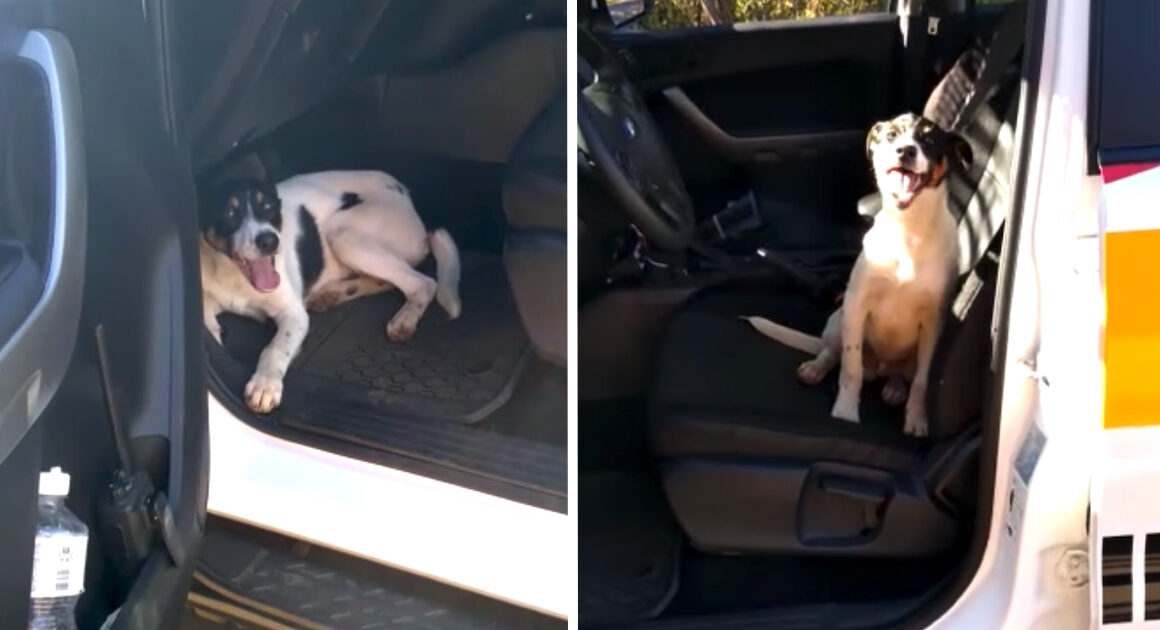 Officers Return To Cop Car To See An Abandoned Dog Had Hopped Inside For Help