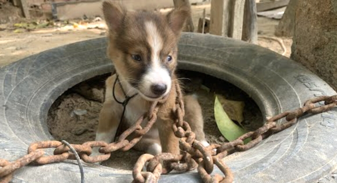 A small puppy was chained outside as punishment by her alcoholic owner for biting one of the chickens. Fortunately, a good Samaritan called a rescue group and reported the situation, and they set out to the location right away. They would free the pup and leave a note saying the dog had been rescued, along with their phone number. Now, Fanta is living her best life with a new little friend! π