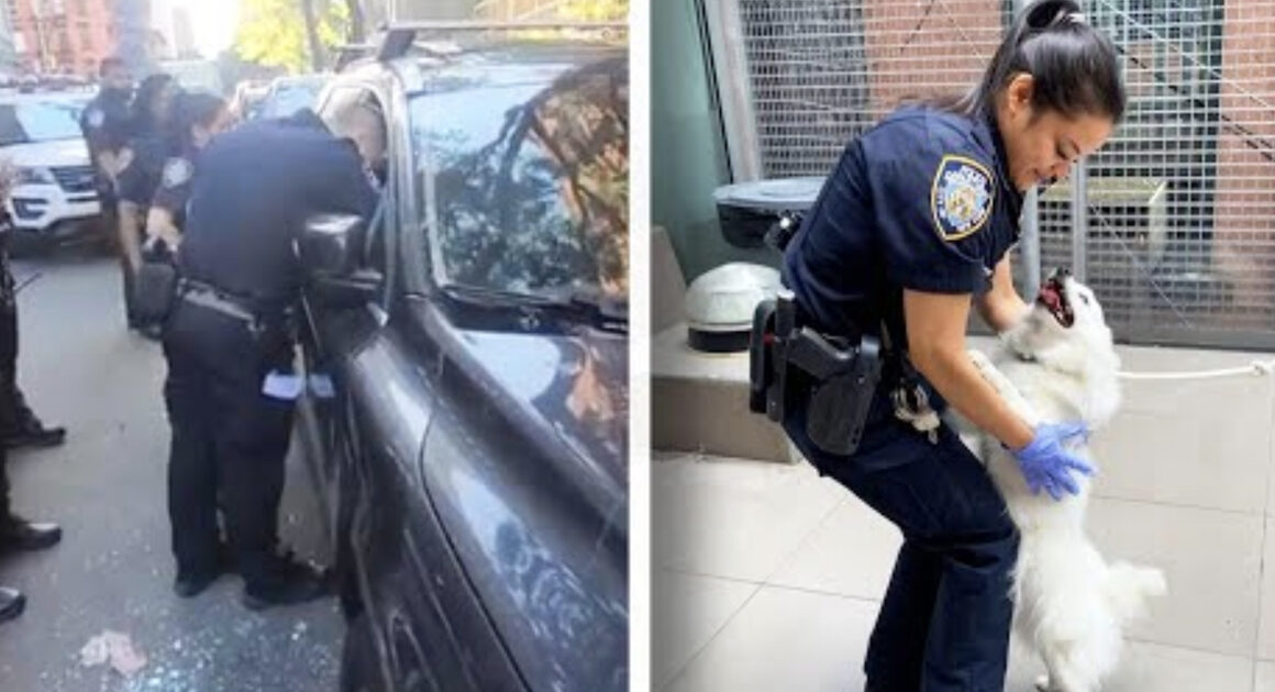 Several officers responded to the scene and worked quickly to break the window and free the dog who was so happy to see everybody! And one officer took a special liking to the sweet dog… The pup was taken to the vet and then handed over to the ASPCA where the officer would show up to adopt the furbaby for good! π