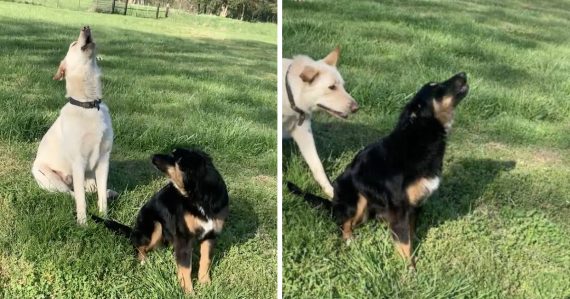 Watch the video below as uploaded to reddit by u/froggywest35 to see Poe interrupt the adorable “awoos.” Molly runs over and gets in his face uninterested in sharing the spotlight! Then the howling competition breaks out, and we’re all better off for it. π