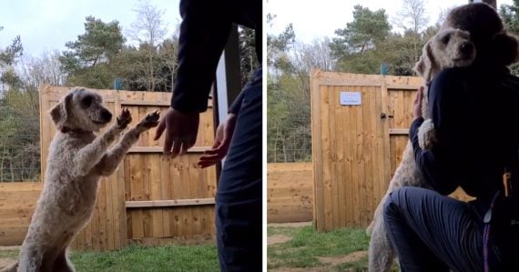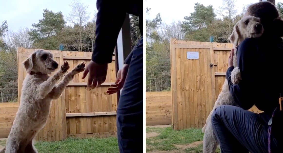After spending the first six years of her life locked in a crate with another dog, this Labradoodle is happy to know she’s in loving hands. When the two dogs first arrived to the shelter, they were terrified as they had no idea what was going on. But there’s been a drastic change since then…