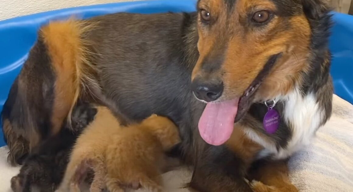 Sad Mama Dog Lost Her Litter, But The Kittens Introduced To Her Latch On