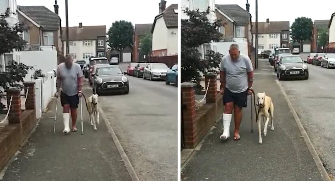 Silly Dog Fakes Limping Around After Dad Breaks His Ankle