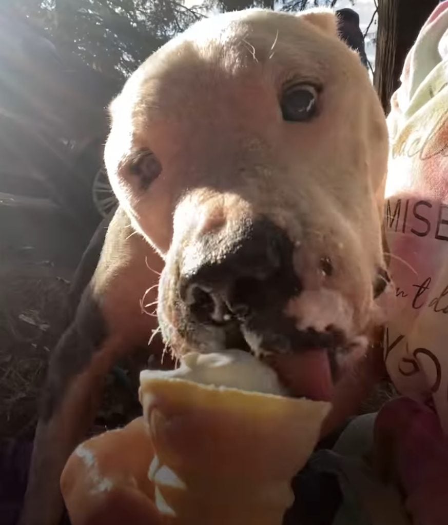 Stacey took the pit bull into her home where they hoped with the proper care that she could just pull through. There were some touch-and-go moments, but Halo kept fighting! The blind dog ended up having a thing for McDonald’s ice cream cones, and she was eventually taken to Lucky Dog Refuge where she fit in so perfectly! Halo loves everyone she meets and is doing well now, and she just needs that loving forever home. π