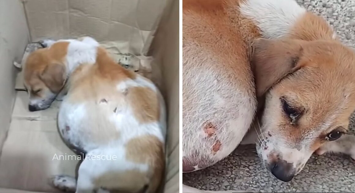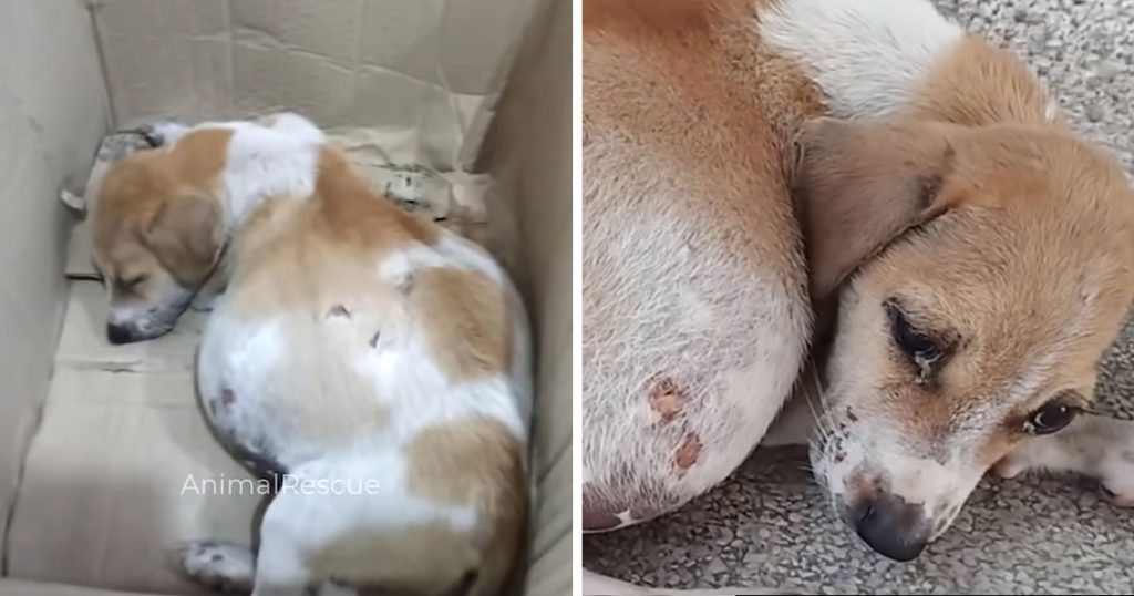 Small Puppy With A Big Belly Was Abandoned In A Cardboard Box