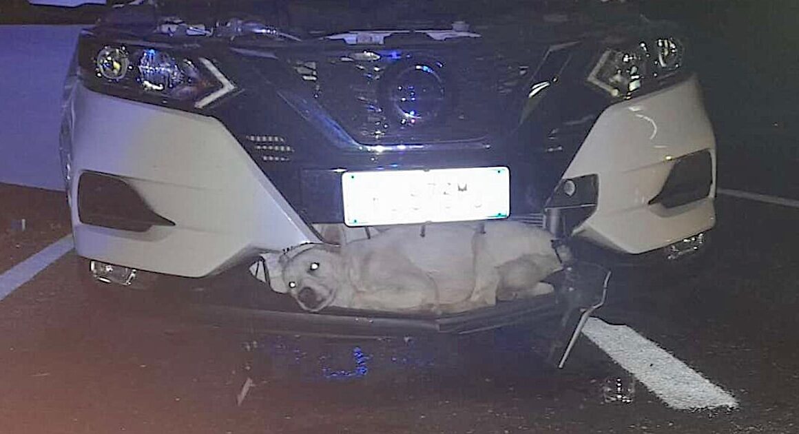 Someone was driving along a highway in Italy at 80-mph when they suddenly felt that they hit something. Worried, they pulled over fearing the worst. It was a white stray dog who’d collided with the front of the car but in miraculous fashion…