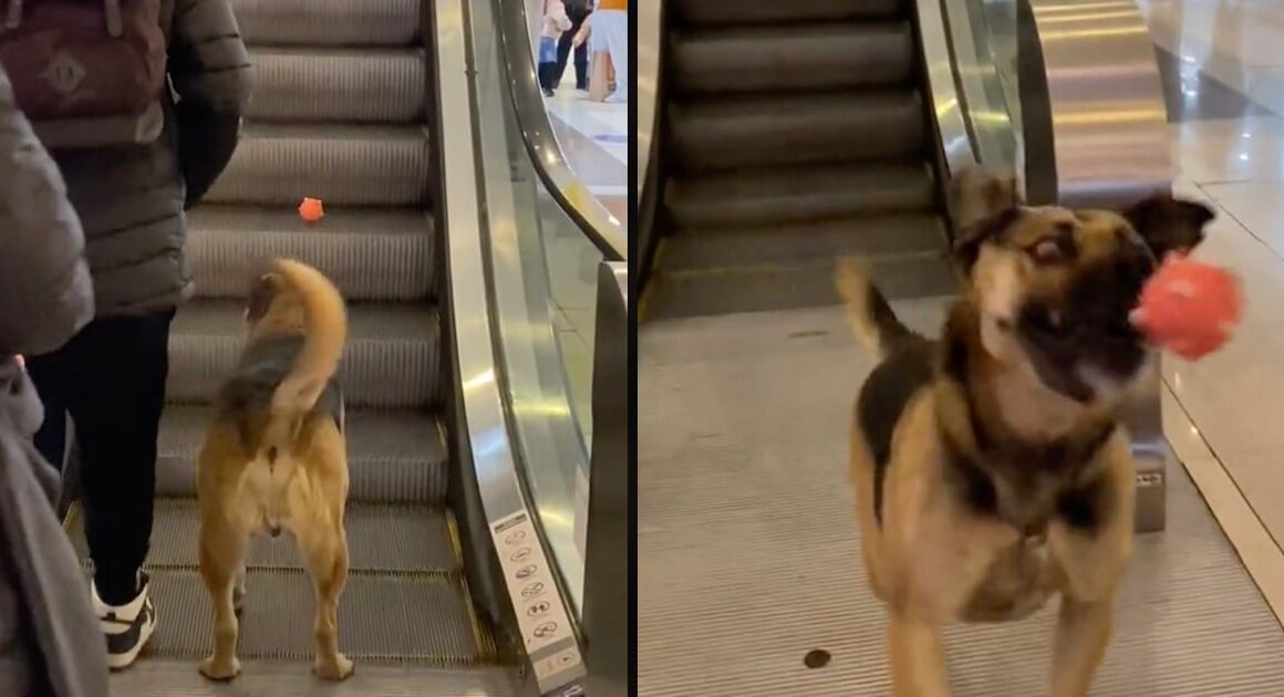 Watch as the clever dog places the ball on the escalator to convince people to throw it back down to the lower floor. Amazing! The customers love interacting with Botella, and the mall staff now sees that he is healthy and taken care of. With how easy this sweet boy can make them, he’ll never be without friends! ๐
