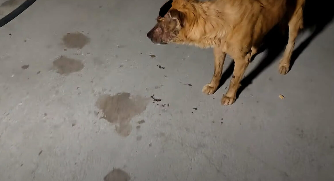 This desperate street dog seemed impossible to save. His skull appeared more incomplete than wounded. The maggots had burrowed in and it now looked like a basin with exposed bone at the bottom. When maggots proliferate like this, they can do enormous damage within just hours. His survival was doubtful. He wandered in circles, but something in his overall body condition gave Animal Aid Unlimited a glimmer of hope.
