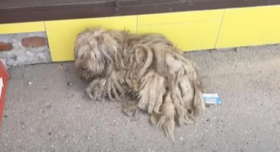 This small dog was nothing more than a ball of dirty fur and mats. He often wandered the market to beg for food, and people didn’t even recognize him as a dog. It took two days, but rescuer Olga found him. And the poor dog was wheezing from high body temperature…