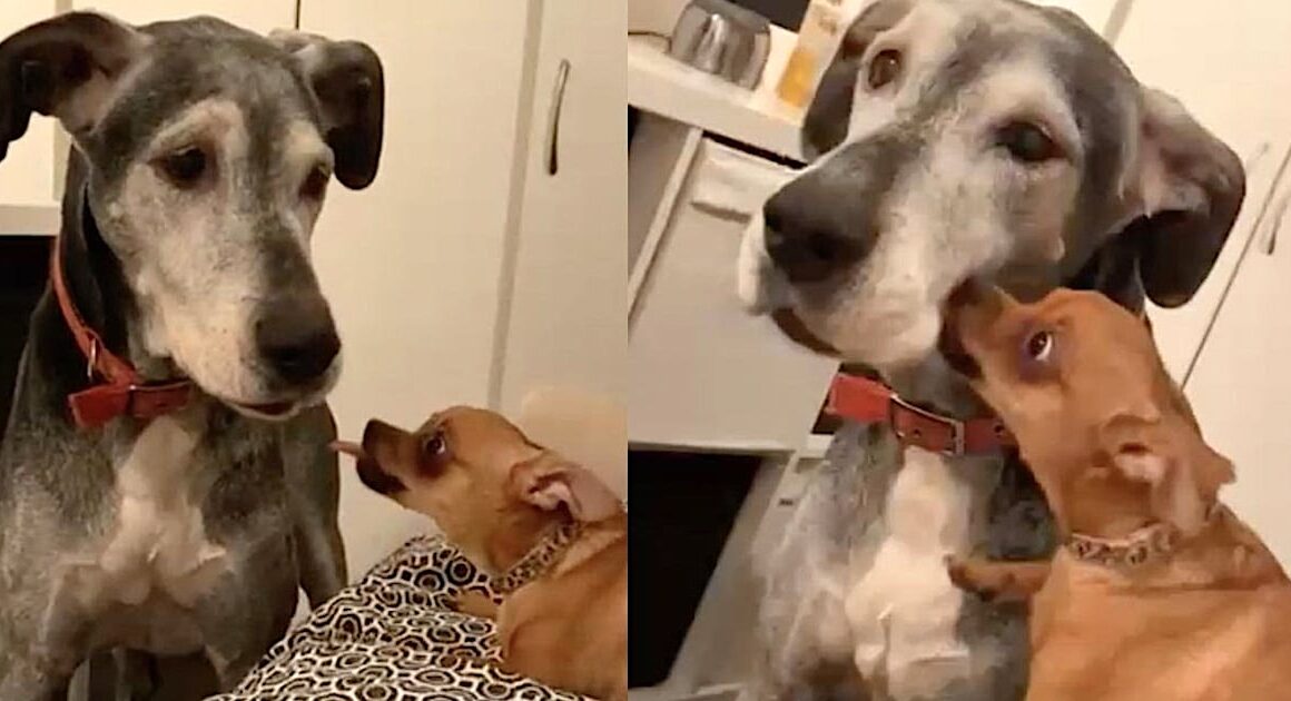 Millie, thought to be the world’s oldest Great Dane at 13-1/2 years old, has just formed an adorable friendship with a tiny Chihuahua puppy. The size difference is as drastic as the age difference as the 3-foot tall gentle giant towers over the 12-month-old Tilly during a play session in the video below! π