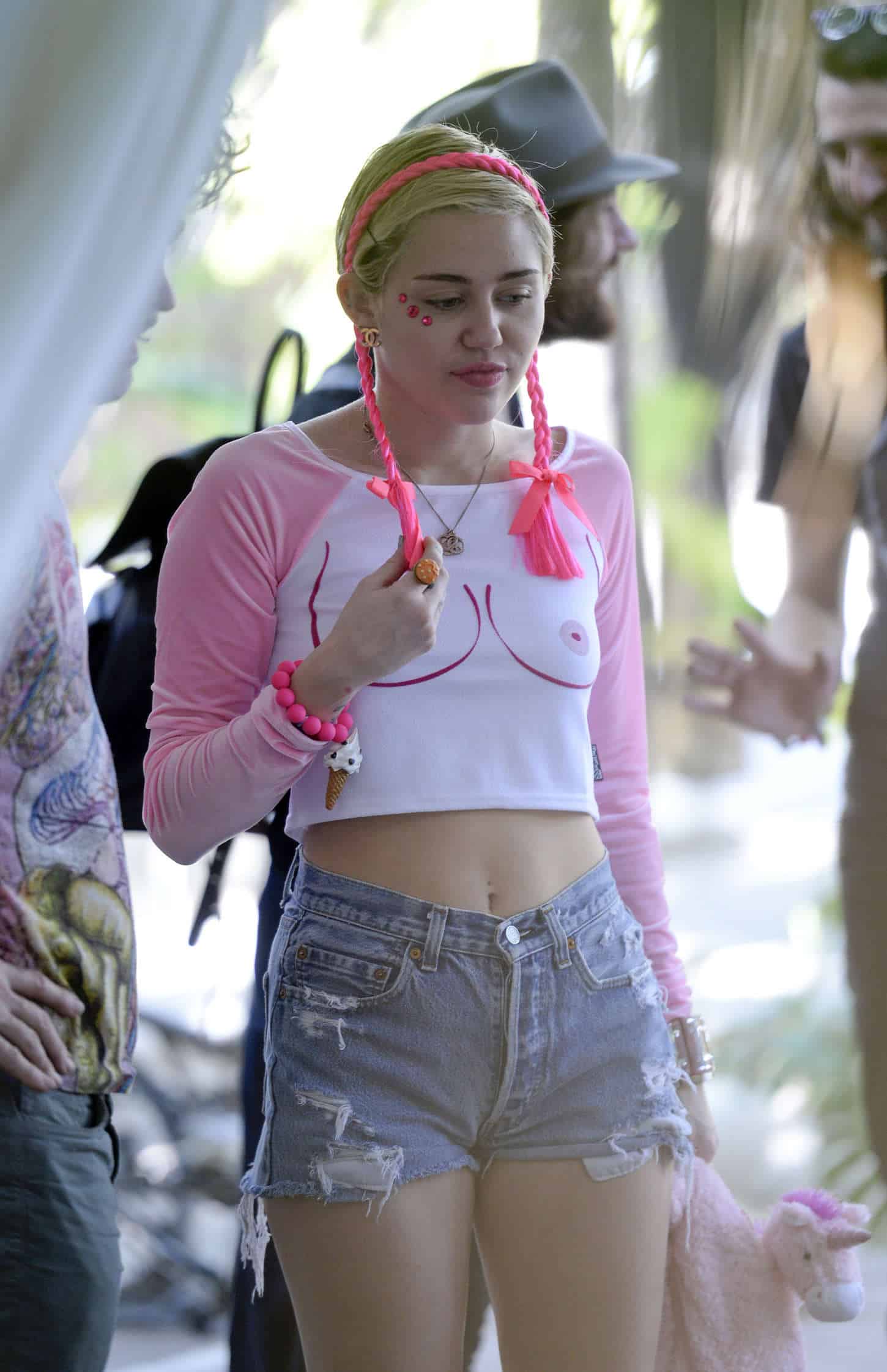 When we talk about New York City, it creates a vibrant and energetic atmosphere that highlights Miley’s persona beyond her status as a renowned music sensation. She seamlessly blends in with the latest fashion trends of the city, adding to her unique personality. The focus is on her denim shorts, which symbolize her fashion statement and reflect her fearless and unconventional style.