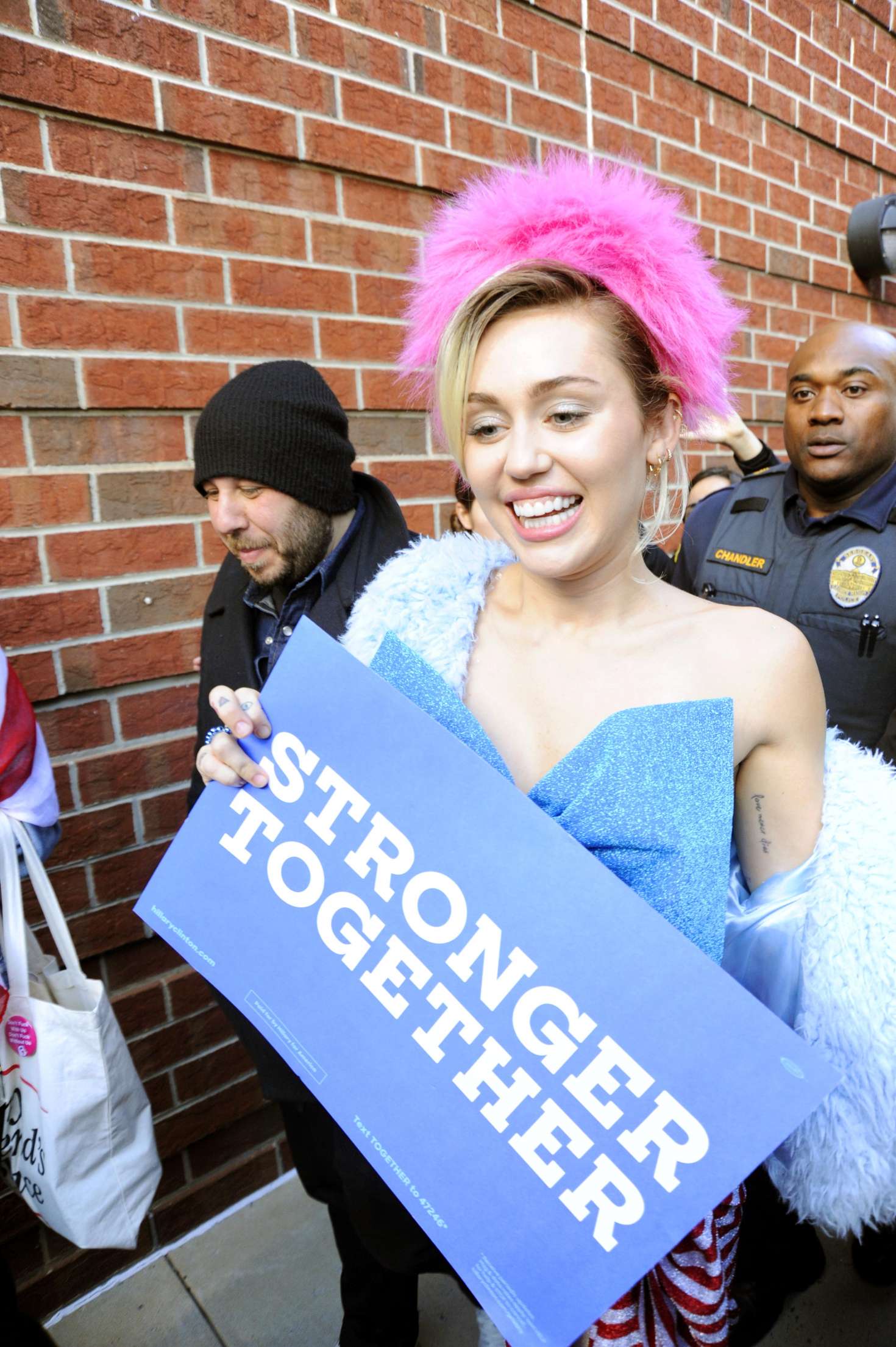 Miley Cyrus, the popular singer and activist, demonstrated her support for Hillary Clinton during a campaign event in Fairfax. With her outspoken advocacy and dedication to various social and political causes, Miley stood alongside Clinton with unwavering conviction. Her activism at the event not only highlighted her commitment to creating positive changes but also encouraged her diverse fan base to actively participate in the democratic process. By using her platform to promote civic engagement, Miley sent a powerful message about the importance of being an active citizen.