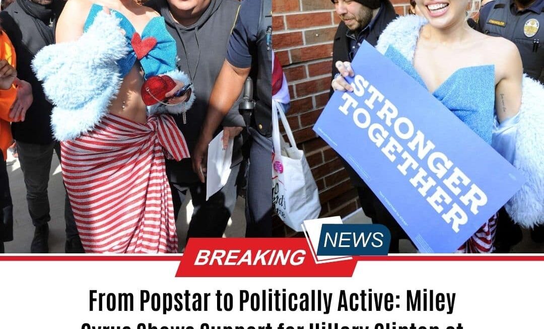 Miley Cyrus appeared at a rally for Hillary Clinton wearing a unique outfit that combined her trademark style with a hint of political influence. She spoke to the crowd, sharing her views on important matters and expressing her confidence in Clinton’s vision for a more inclusive and progressive society. By using her platform for activism, Miley emphasized the power of public figures to shape public opinion and encourage civic engagement beyond the realm of entertainment.