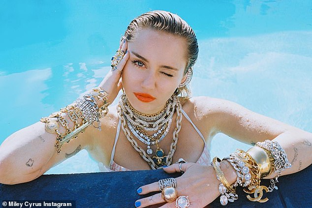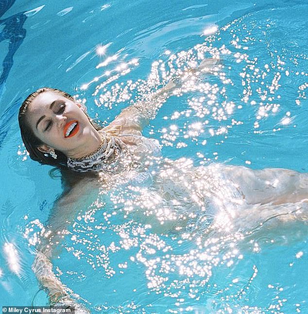 Time for a dip in the pool: Miley shared a series of pictures from the session earlier this week.