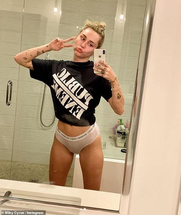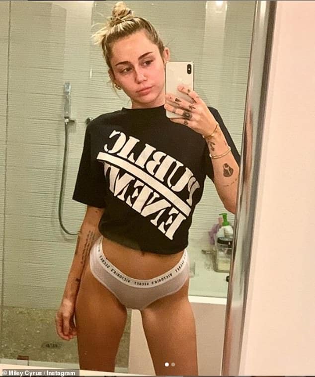 Miley Cyrus has taken a brief pause from flaunting her romance with Cody Simpson to share a couple of stunning selfies on social media. The singer can be seen posing in front of her bathroom mirror, wearing a t-shirt featuring the slogan ‘Public Enemy’ along with some briefs. Miley asked her followers if these kinds of selfies still relevant, and Cody chimed in with a comment saying they are now. On Sunday, the star also made a savage remark about her ex-husband Liam Hemsworth during an Instagram live session.