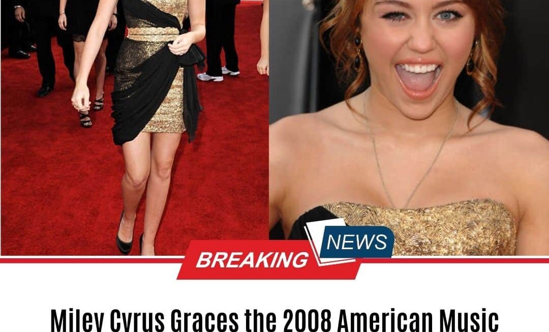 In a dazzling spectacle that echoed the glamour of the music industry, Miley Cyrus made a stunning entrance at the 2008 American Music Awards, held at the iconic Nokia Theatre L.A. LIVE. The red carpet served as a runway for the young pop sensation, who captivated onlookers with her undeniable charm and poise. Miley’s choice of attire reflected a perfect blend of sophistication and trendsetting style, leaving a lasting impression on the gathered crowd and fashion enthusiasts alike.