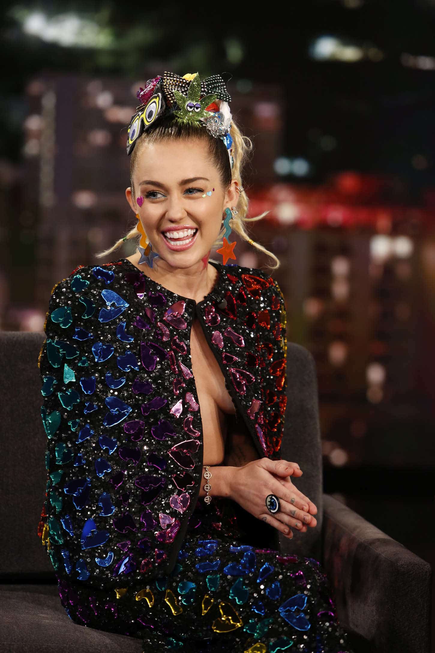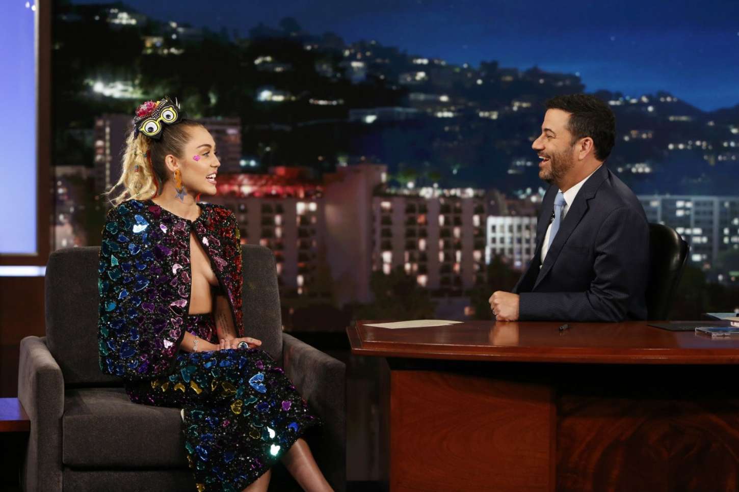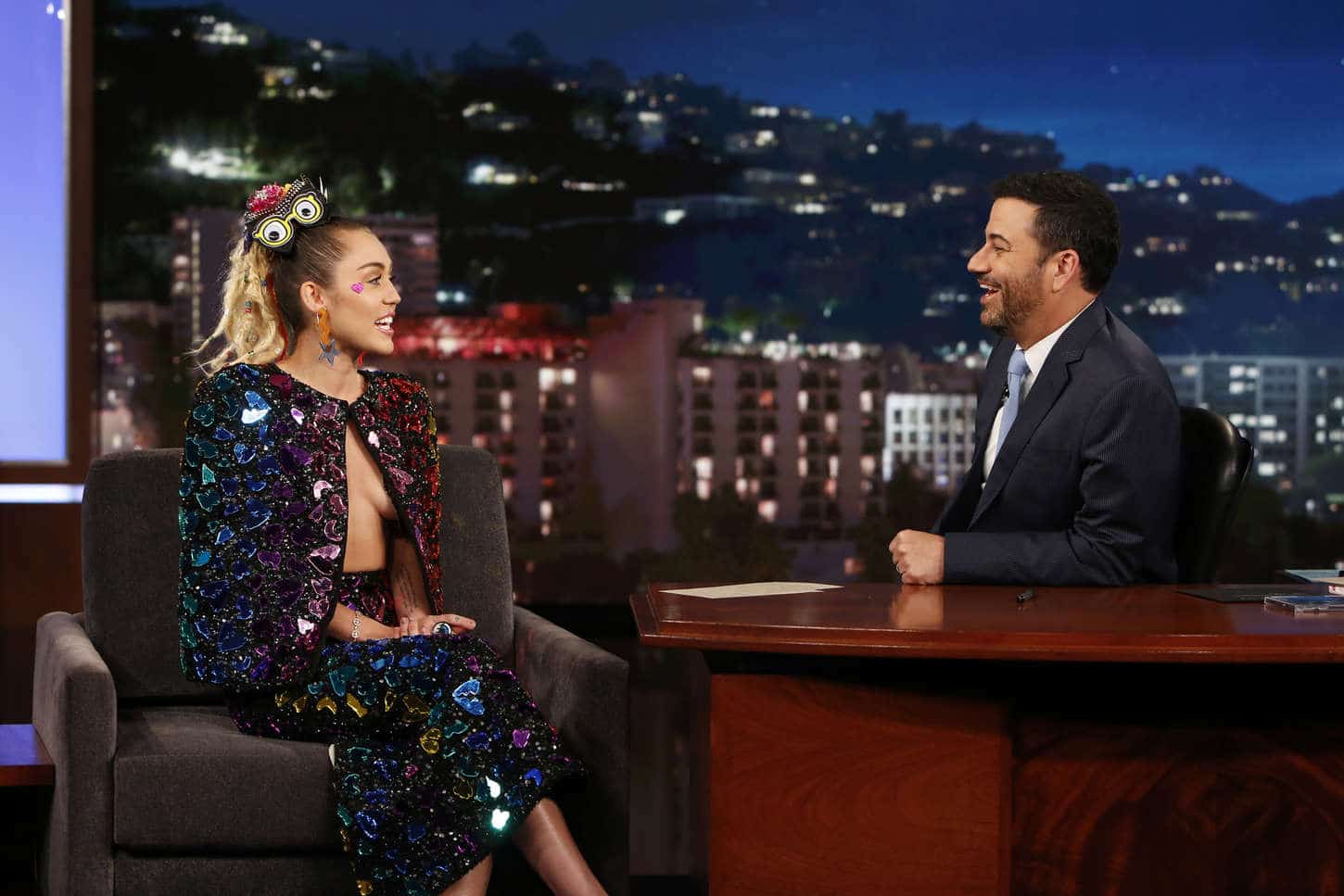 Amidst the dazzling and extravagant atmosphere of Hollywood, Miley Cyrus grabbed everyone’s attention on the widely-watched talk show ‘Jimmy Kimmel Live.’ Her captivating performance left the audience completely mesmerized and in awe. The vibrant energy of Hollywood Boulevard served as an ideal backdrop for an unforgettable night, as Miley, the embodiment of pop music talent and individuality, charmed everyone with her remarkable appearance on the legendary TV show.