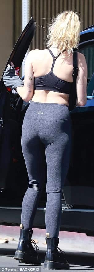 During her exercise routine, a 25-year-old musician who has been nominated for both Grammy and Golden Globe awards was dressed in a black sports bra, charcoal-grey yoga pants, and $160 Dr. Martens ‘Molly Patent’ platform boots.
