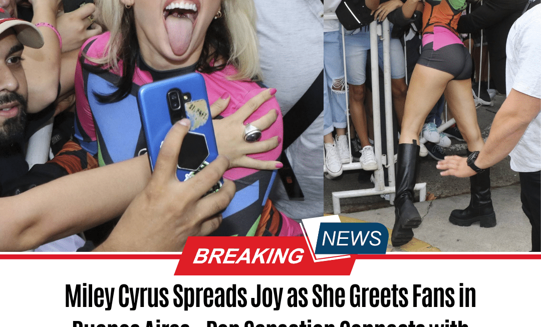 Miley Cyrus spread joy among her fans in Buenos Aires as she greeted them with warmth and enthusiasm. The pop sensation, known for her vibrant personality, took a moment to connect with her admirers, creating a memorable experience for those gathered to catch a glimpse of the international star. Cyrus’s interaction with fans showcased her appreciation for their support, and her genuine and friendly demeanor left a positive and lasting impression on the crowd in Buenos Aires.