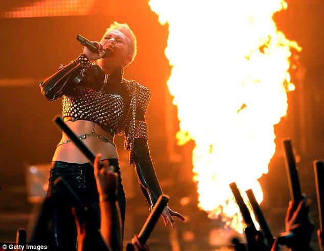 Miley went for a classic rock ‘n’ roll move once again, delighting the audience with a stage dive. The crowd went wild, their hands clutching quirky foam night sticks.