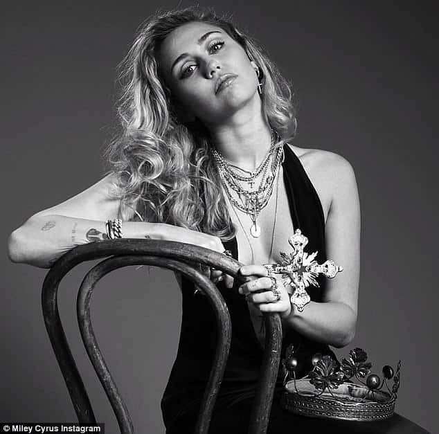 Miley Cyrus made a bold fashion statement by wearing a low-cut, backless dress that showcased her figure. She eschewed a bra, allowing her tattoos and beautiful necklaces to be on full display, including some from Gabriel NY. While her outfit was simple and elegant, it also had a daring edge that reflected the intricate nature of Catholicism. The black dress was adorned with religious symbols, adding a touch of spirituality to her risque attire.