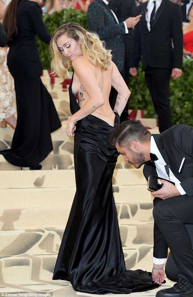 Holding it all together: Black magic appeared to hold Miley’s dress in place