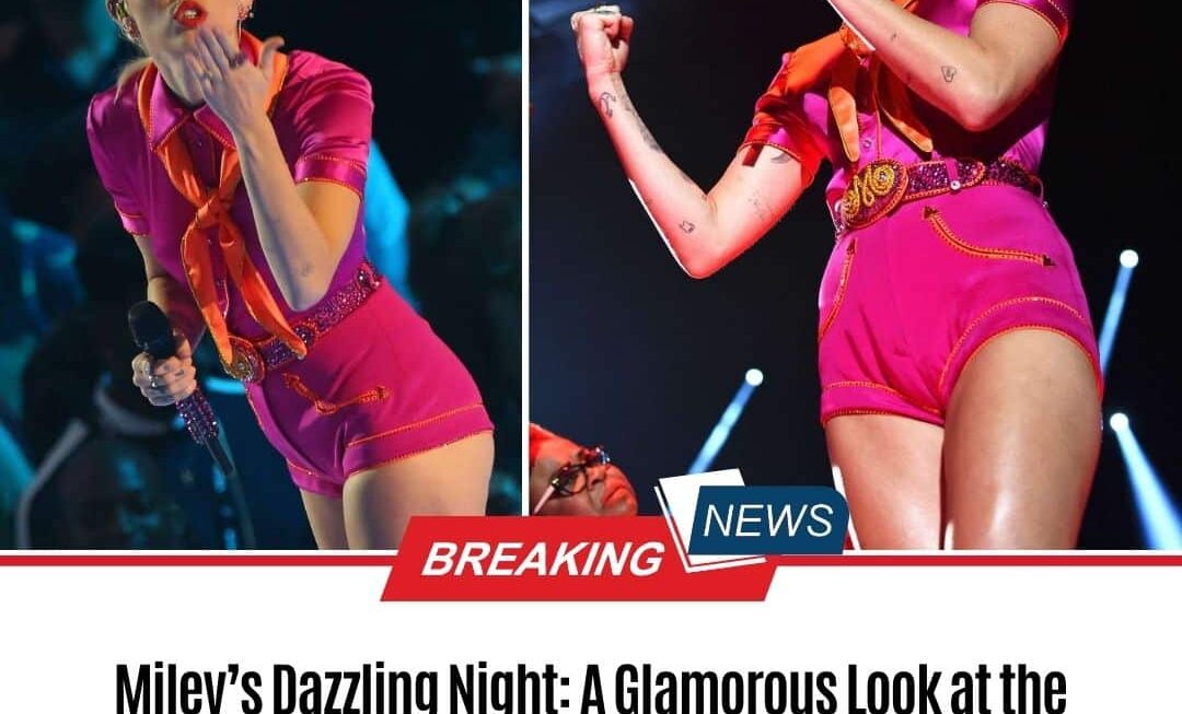 The phrase “Dazzling Night” evokes a sense of excitement and brilliance, suggesting a narrative filled with noteworthy highlights from Miley’s appearance at the VMAs. The mention of a “Glamorous Look” hints at Miley’s sartorial choices, emphasizing the blend of sophistication and trendsetting style.