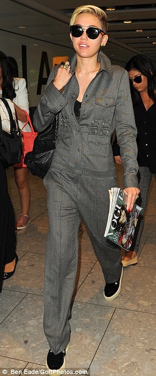 Miley exuded a jetsetter’s vibe as she arrived at London’s bustling Heathrow airport on a leisurely Wednesday. Draped in a chic jumpsuit, she effortlessly carried a copy of the illustrious Vogue magazine, adding an air of sophistication to her travel ensemble.