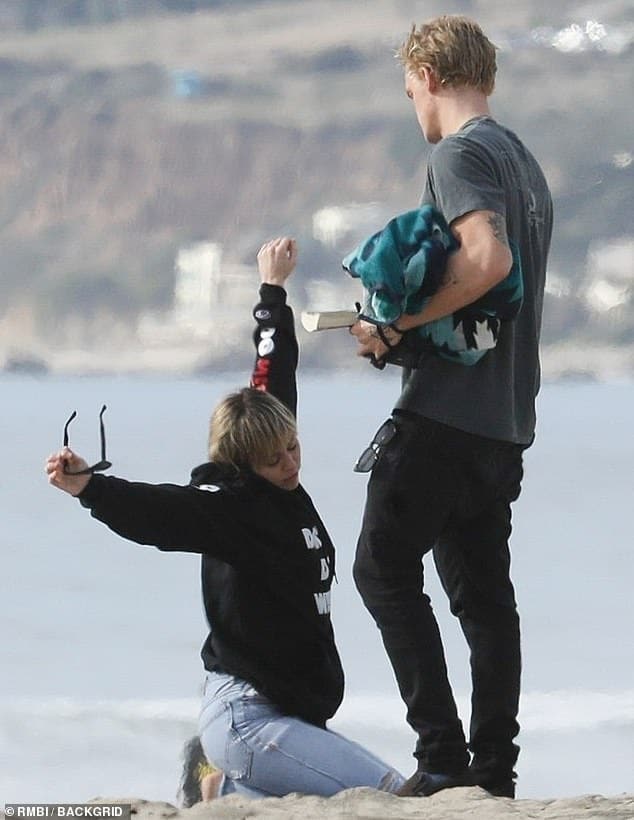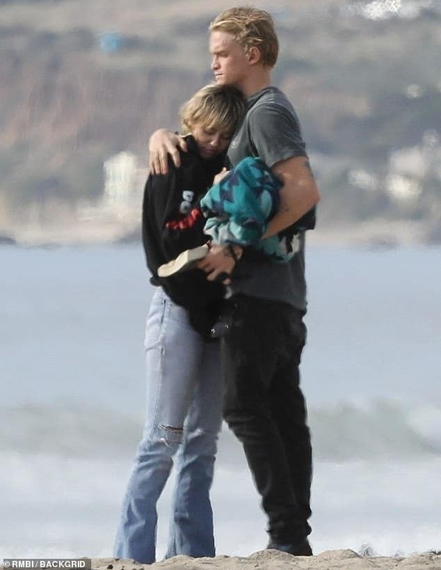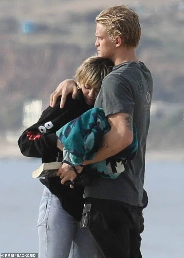 Reconciliation: After a brief moment of tension earlier in the day, it appears that they have successfully patched things up when they departed from the beach. Miley gracefully crossed her legs and enveloped her boyfriend in a warm embrace, visibly indicating their renewed closeness.