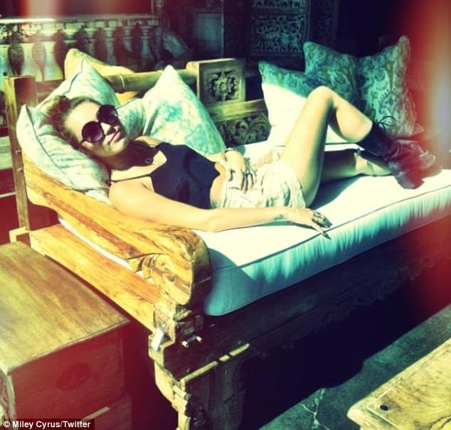 Miley Cyrus took to her Twitter to share a delightful moment, capturing herself blissfully soaking up the sun’s embrace while comfortably seated on a bench. It seems that the talented musician greatly enjoys the simple pleasure of sun-kissed relaxation!