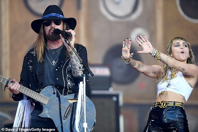 Billy Ray Cyrus, aged 57, also made a guest appearance on stage with the vocalist.