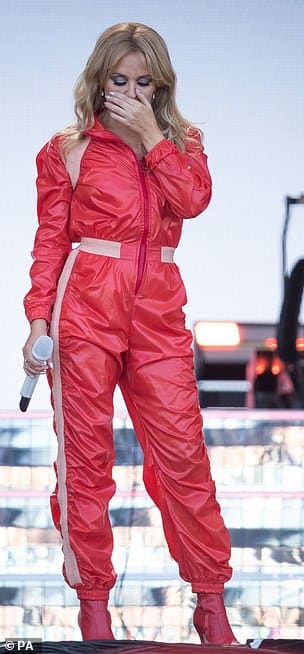 Kylie Minogue delivered an impressive and moving show as she graced the Pyramid Stage at the festival, right before Miley Cyrus’s performance.