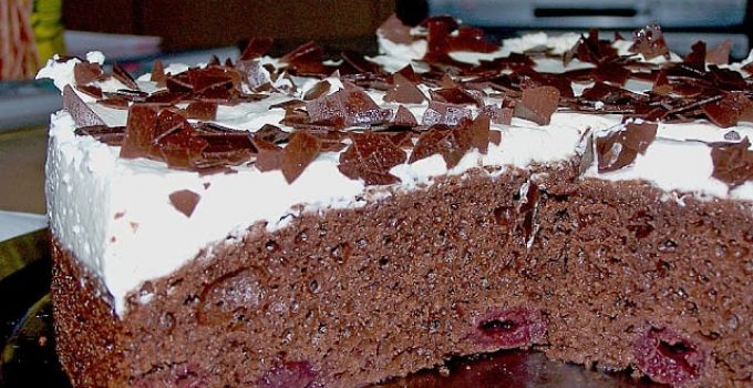 Eier mit Öl, Zucker und Vanillezucker schaumig schlagen. Mehl mit Backpulver mischen und unterrühren. Kakao und Milch zugeben. Den Teig in eine gefettete Springform (26cm) füllen und die abgetropften Kirschen darauf verteilen, dann bei 180 Grad 40 Min. backen.