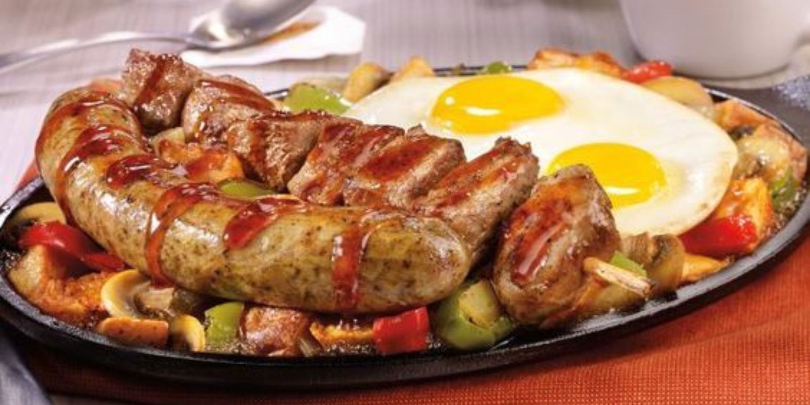 - Die Bratkartoffeln und die Wurst auf Teller verteilen und mit den Spiegeleiern garnieren.