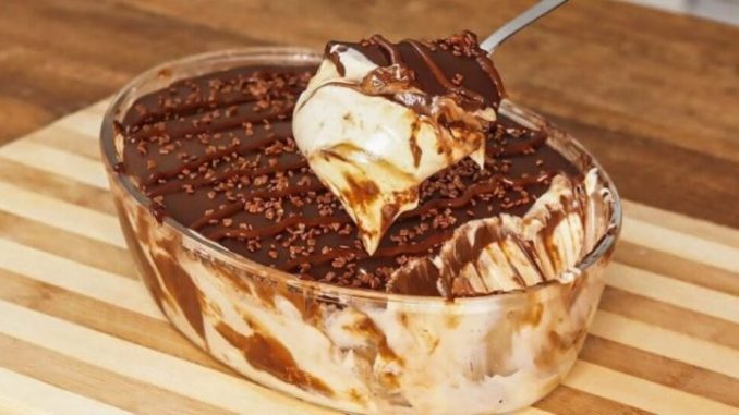 Schokolade und restliche Sahne (200 ml) im Wasserbad schmelzen, bis eine homogene Masse entstanden ist.Dessert im Kühlschrank abkühlen lassen, damit die Ganache sich wieder etwas verfestigt, und nach Belieben verzieren.