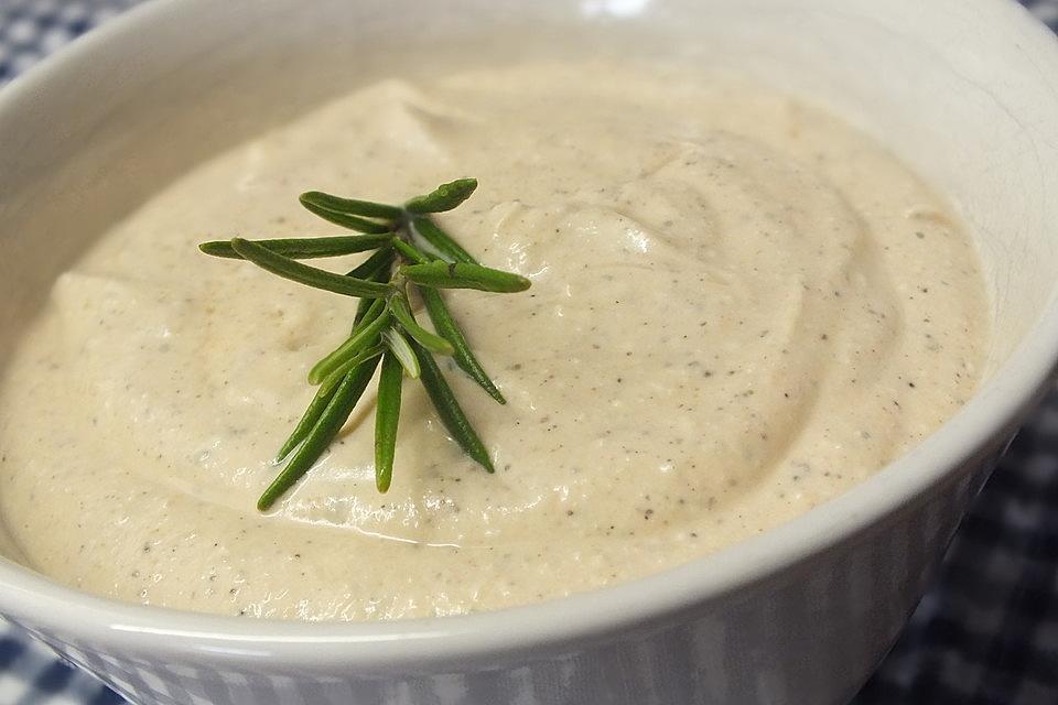 Alle Zutaten in ein hohes Gefäß geben und mit einem Stabmixer zu einer homogenen Masse verarbeiten. Mit Salz und Pfeffer würzen und bei Bedarf etwas Milch oder Wasser dazu geben, um die gewünschte streichfähige Konsistenz zu erreichen.