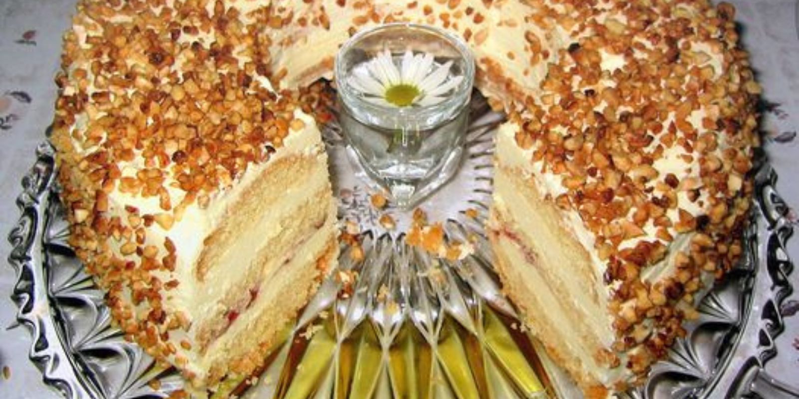 - Außenschicht: Die restliche Buttercreme gleichmäßig auf der Oberfläche und den Seiten des Kuchens verteilen. Die gehackten gerösteten Haselnüsse leicht in die Buttercreme drücken.
