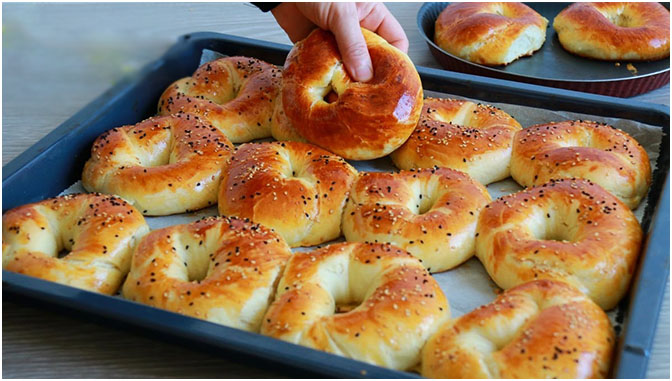 Aufs Backblech legen ,mit Eigelb und Milch einpinseln und Schwarzkümmel und Sesam oben drauf.