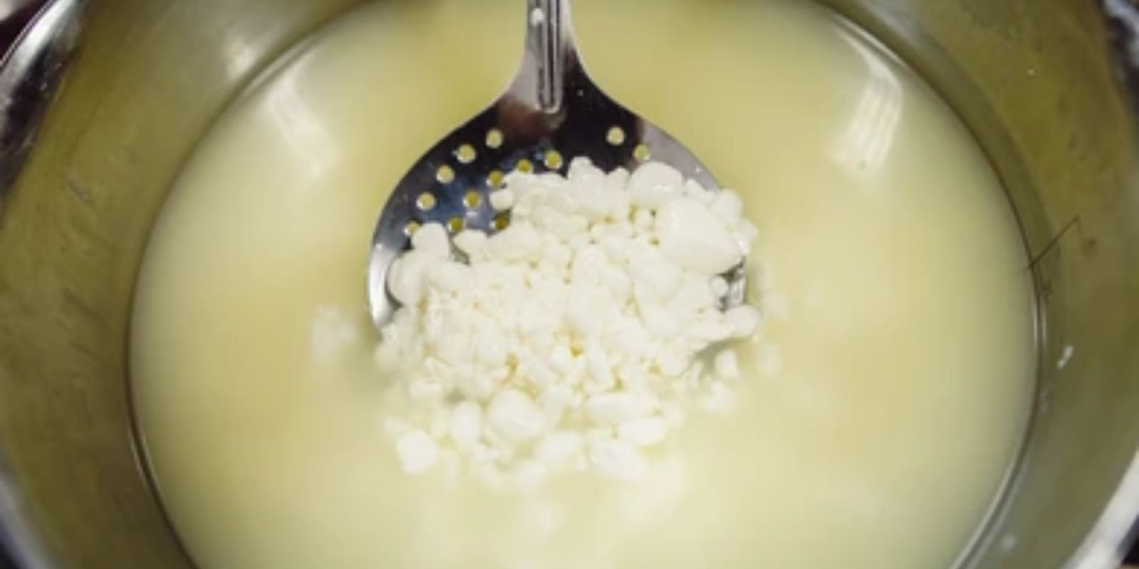 2. Überprüfen Sie die Konsistenz der Milch, sie sollte wie weicher Pudding sein. Wenn Sie mit dem Finger hineinstecken und ein sauberes Bruchmuster erhalten, ist die Milch geronnen.